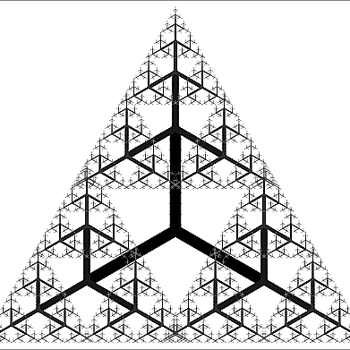 Aparece entonces una imagen tridimensional, cuya característica más notable es que está compuesta por copias de la imagen total en escalas cada vez más pequeñas.