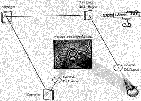 Un holograma es un tipo de fotografía en la que, un haz coherente de luz barre un objeto y se recoge en una placa como patrón de interferencia.Cuando el registro fotográfico se vuelve a colocar en un haz de luz coherente (como el láser), se regenera el patrón de onda original.